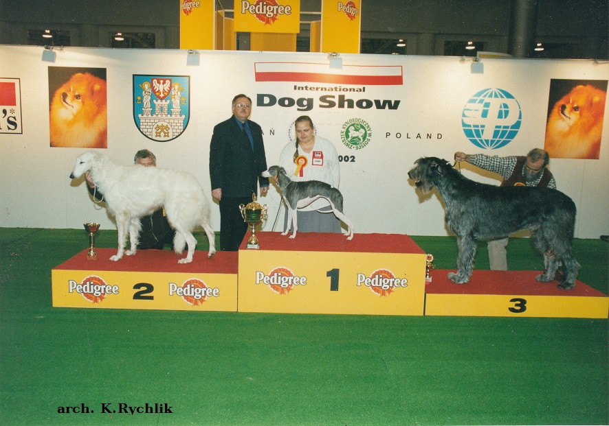 URSA MAIOR, została w hodowli. Bardzo dużo pokazywana na wystawach uzyskała wiele znaczących tytułów i wyróżnień. Szybko została championką Polski. 2x Zw. Młodzieży, 6xCWC, 2xres-CAC, BOB, 1xres-CACIB, 3xCACIB, 3xBOB, BOG, Zw.Polski 2002