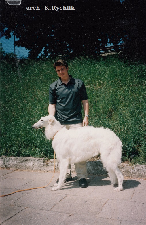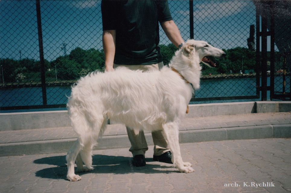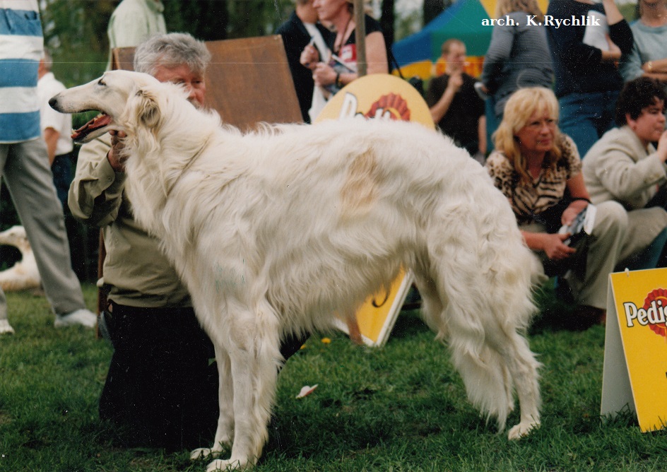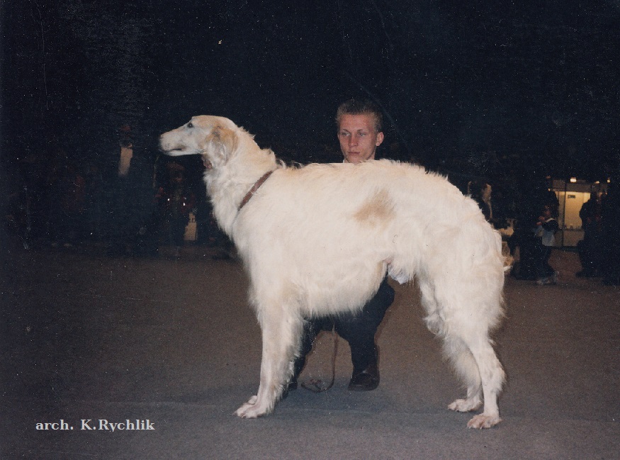 Borscana CIVIL WAR-Int. Ch (którego pózniej w swoim rodowodzie będzie miał kolejny import Pana Kazimierza-Radoga's WIL ONE)-najlepsza para borzojów światowej wystawy w Helsinkach 1998.