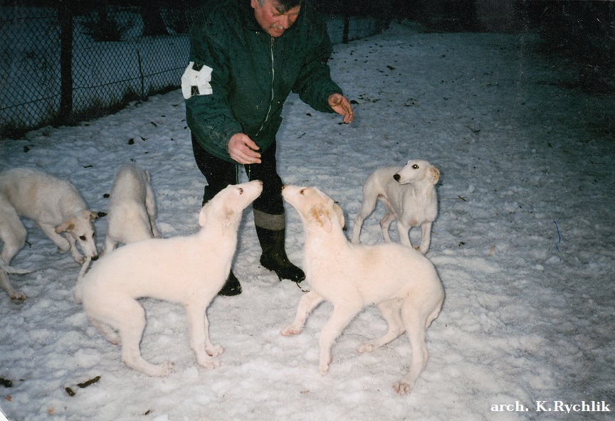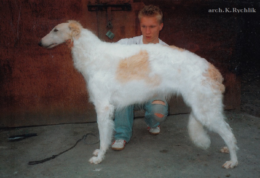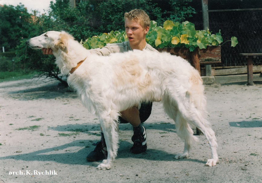 VITAY, jego właścicielką była Iwona Zamojska z Sandomierza. Oprócz Vitaya miała ona już kilka psów z hodowli Pana Kazimierza. Ten bardzo dobrze rokujący pies został otruty jako kilkunasto-miesięczny młodzik. Kilkakrotnie pokazywany na wystawach uzyskał kilka zwycięstw młodzieży. Był niedużym psem, o mocnej kości, pięknej głowie i długiej szyi. Jak dla mnie miał nieco za krótki tułów.