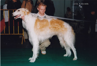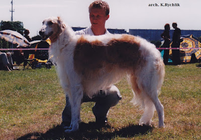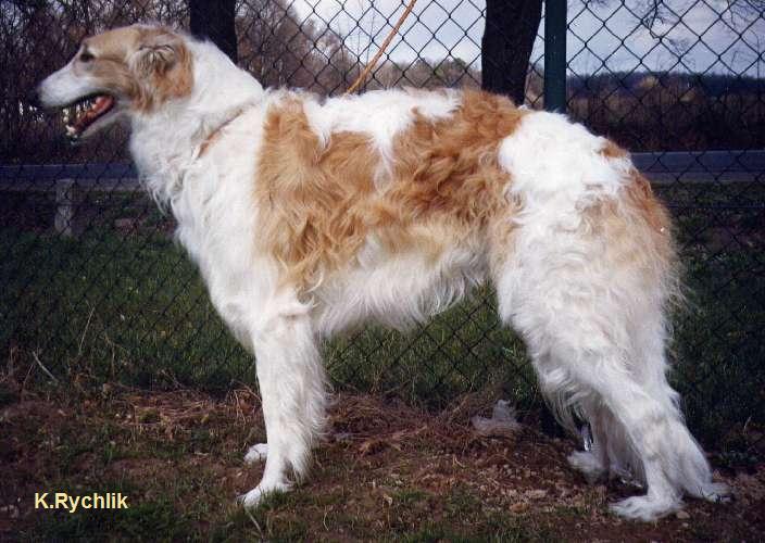 DIRIK CZARNIJIN von Prisca, to biało-rudy pies urodzony 30 pażdziernika 2000 roku w niemieckiej hodowli Państwa Klaus-Dieter Uetz i Petry Nicole Schmid Uetz, początkowo trafił do hodowli borzojów na Białorusi. Posiadał doskonały rodowód fiński, który bardzo zainteresował Pana Kazimierza, w którym to rodowodzie spotkać możemy fińskie championy słynnych linii "Timirjan's", "Margitan" i "Miskat". Ten rosły samiec był już Championem Białorusi, doskonale także sprawdzał się na torach wyścigowych. Pan Kazimierz zapragnął go mieć i rozpoczął starania, aby go odkupić z rąk jego dotychczasowej właścicielki. Napisał do niej list, że chciałby go kupić, ta chętnie się zgodziła i zaproponowała sumę 1000 $. Pan Kazimierz nie zgodził się z tak wysoką ceną za psa. W końcu wynegocjował dla siebie korzystną cenę 200 $ i pojechał odebrać go na granicę w Krynicy Białostockiej. DIRIK prezentował się wspaniale, był wykąpany i wyczesany, robił fantastyczne wrażenie, zachwycał ! Jego właścicielka szybko przeliczyła pieniądze i odjechała. Od tego momentu DIRIK był już własnością Pana Kazimierza i jego największym Przyjacielem, Pan Kazimierz bardzo go pokochał. I tak jesienią 2003 roku DIRIK zamieszkał w Michałowie.