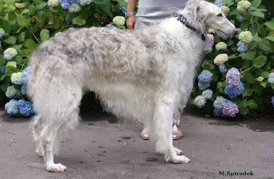 Jak wspomina Pani Magdalena-to był jej pierwszy samiec borzoja-miał 13 miesięcy. W domu w Zakopanem czekały już na niego dwie suczki borzojki: pręgowana HERA z Pogranicza oraz srebrno-szara HARIELLA Majove Bohemia. Saha bardzo szybko zaaklimatyzował się w nowym domu i pokochał luksusy: spanie na wersalkach, poduszki, miękkie legowiska. Mógł wreszcie być KRÓLEM !