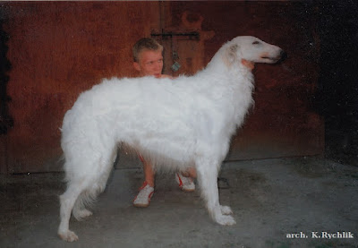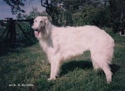 ŻAGIEW, była wyjątkowo piękną suczką, bardzo sucza, z piękną głową i doskonałymi proporcjami ciała, doskonała w ruchu. Jej wizytówką była niewątpliwie jej szata: powiewający w powietrzu jedwabisty włos.