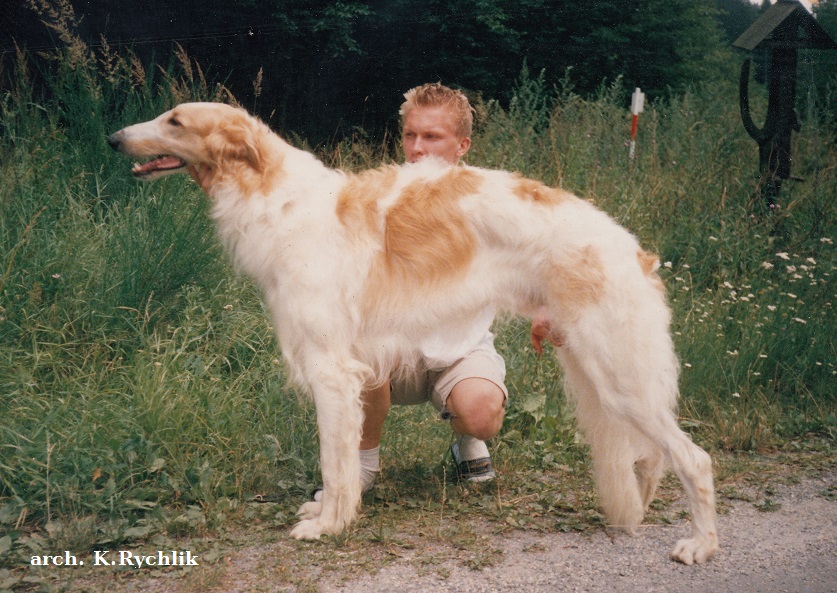Miał bardzo dobry rodowód angielsko-fiński, który bardzo zaciekawił Pana Kazimierza. Jego pradziadkiem był wspaniały IntCh, Multi Ch, Zw. Świata' 98 Japejukan KULKURI. W drugim i trzecim pokoleniu spotkamy borzoje z hodowli :"Rakenlov", a mianowicie Rakenlov BEILY BARITSNIKA rezydującego w hodowli "Stepowy Goniec" oraz Rakenlov PALOMĘ.