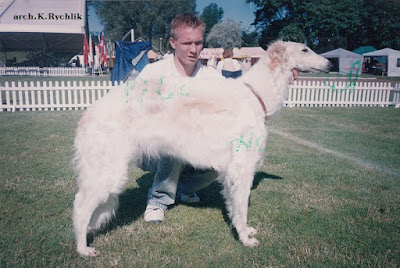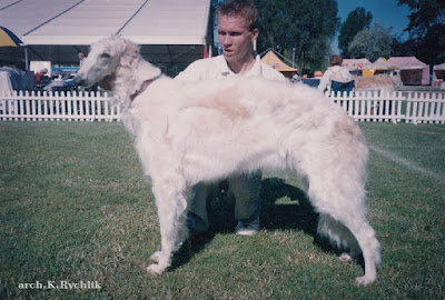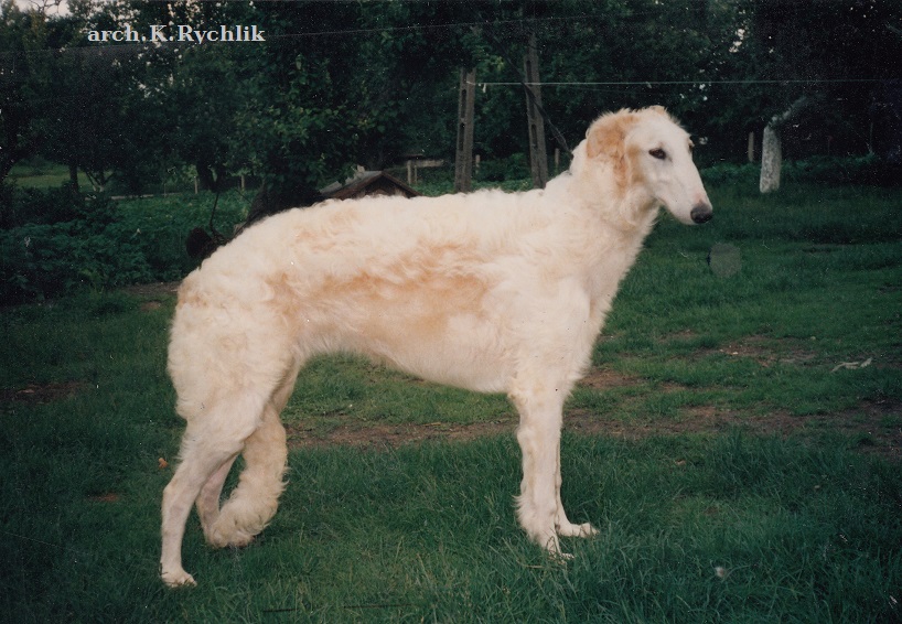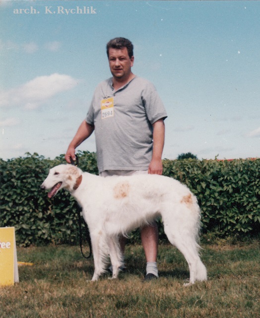 VITAY, jego właścicielką była Iwona Zamojska z Sandomierza. Oprócz Vitaya miała ona już kilka psów z hodowli Pana Kazimierza. Ten bardzo dobrze rokujący pies został otruty jako kilkunasto-miesięczny młodzik. Kilkakrotnie pokazywany na wystawach uzyskał kilka zwycięstw młodzieży. Był niedużym psem, o mocnej kości, pięknej głowie i długiej szyi. Jak dla mnie miał nieco za krótki tułów.