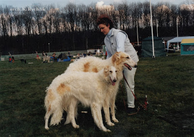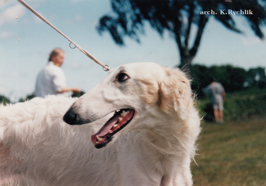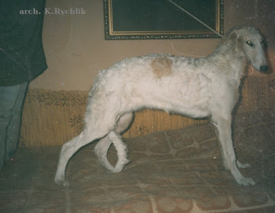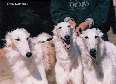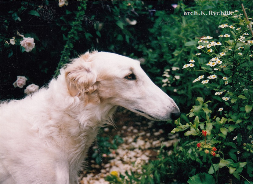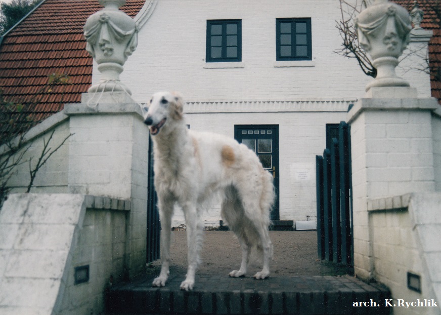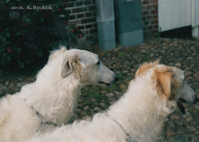 Kończył się już powoli czas pobytuRakenlova BEILY BARITSNIKA (Japejukan KULKURI-Margitian QUIN QUICK STEP) w hodowli "Stepowy Goniec". Jak już pisałam w osobnym artykule poświęconym Huljariowi, Pan Kazimierz wypożyczył go na 2 lata. Jego pobyt w Polsce zaowocował 4 miotami i licznymi sukcesami na wystawach. Ostatnim jego potomstwem były dzieci poŚPIEWCE Stepowy Goniec(IWAN Grotius-BIERIOZKA Duma Bojarów), jakie urodziła 22 września 2002 roku. Urodziły się same suczki, 3 siostry: XANTA XYNIA, ChPl XALNA