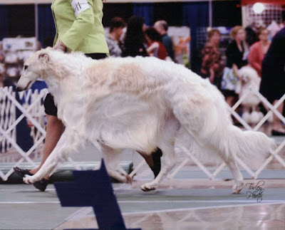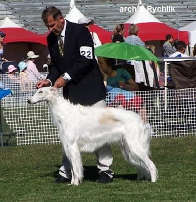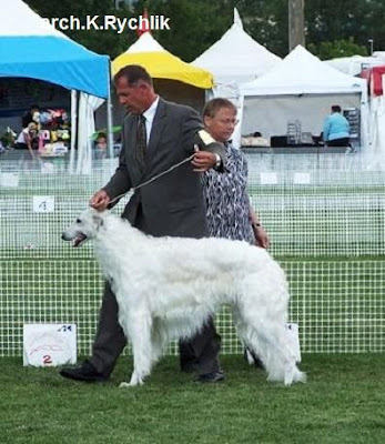 Jak już wiemy z poprzednich postów, Linda wcześniej kupiła już dwa borzoje od Pana Kazimierza, także rodzeństwo: ŻAGIEW i ŻYWIOŁA Stepowy Goniec. Merla Tompson kupiła także siostrę miotową BON JOURA-BELLE DE JOUR. Oba borzoje chciała wypróbować na wyścigach i dlatego sprowadziła je do Kanady. Linda zaś wybrała go sobie na ojca swoich przyszłych szczeniąt, jakie urodziła dla niej jej wspaniała ŻAGIEW.