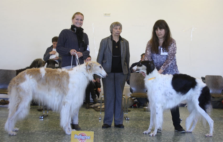 XYNIA to suka z doskonałym rodowodem, w którym spotkały się ponownie linie fińskie, podobnie jak u "Willego": jej dziadek to zwycięzca świata wspaniały Japejukan KULKURI, z polskich borzoji to piękny IWAN Grotius , BIERIOZKA Duma Bojarów czy niezapomniany BOJAR Nesson.